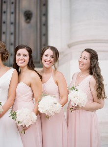 Pearl pink and blushing pink appear nearly identical on the screen, but in person they are very different. While blushing pink is a light, summery, baby pink; pearl pink takes on a warmer tone and looks closer to a light peach. Both shades combine easily with other Azazie colors, but do not always work well together. Azazie customers often find themselves choosing one or the other to finish off their color palette.