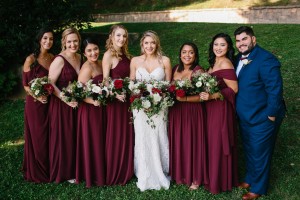 Burgundy and cabernet are both deep red tones. They can each successfully create an enchanting and romantic atmosphere for your wedding. However, there are some important differences between the two that you should consider. Note that the burgundy has a brighter and redder tone, while the cabernet provides a richer and darker color with a touch of purple. Azazie customers often choose one or the other, but they can also look beautiful together.